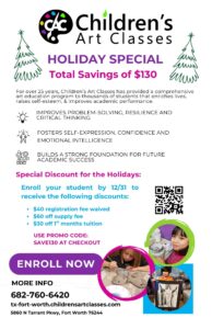 Are you looking to give your child the gift of art in 2026? Don’t miss out on our HOLIDAY SPECIAL!! Save $130 when you enroll your student by DECEMBER 31st.